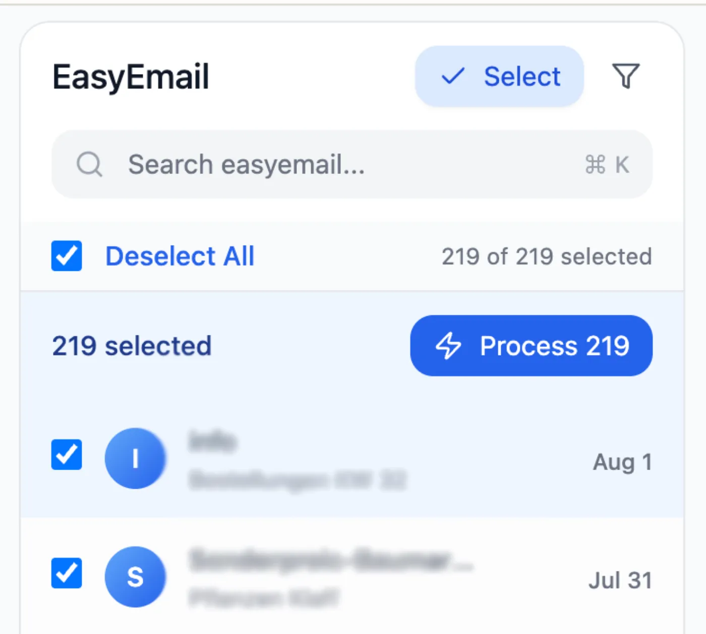 KI liest automatisch und extrahiert Bestelldetails aus Hunderten von E-Mails über mehrere Kanäle.